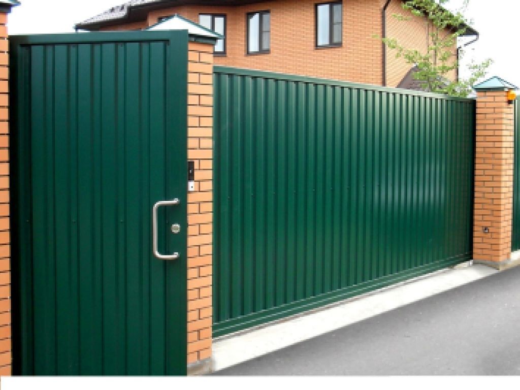 Откатные ворота из профнастила с встроенной калиткой